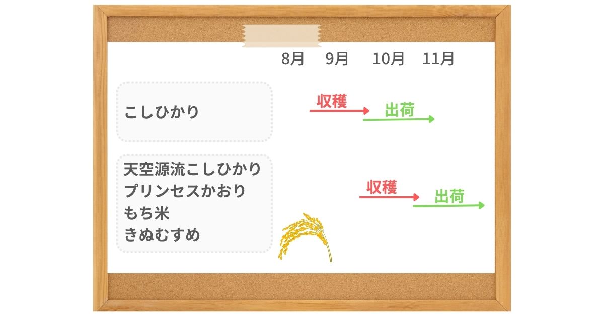 9月から稲刈り、10月からこしひかりの出荷を開始。