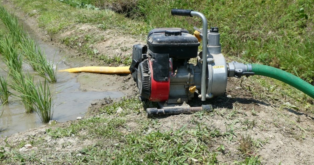 そこで、上流から流れていく水路にポンプを設置し、水をくみ上げて再利用。